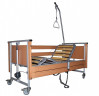 Боковые ограждения регулируются по высоте и опускаются ниже уровня основания, что облегчает комфортное сидение пациента на электрической кровати. Колеса, установленные на медицинскую кровать, оснащены тормозами с индивидуальной блокировкой. Головная и бедренная секция регулируются по углу наклона от пульта дистанционного управления, ножная секция вручную. В многофункциональной